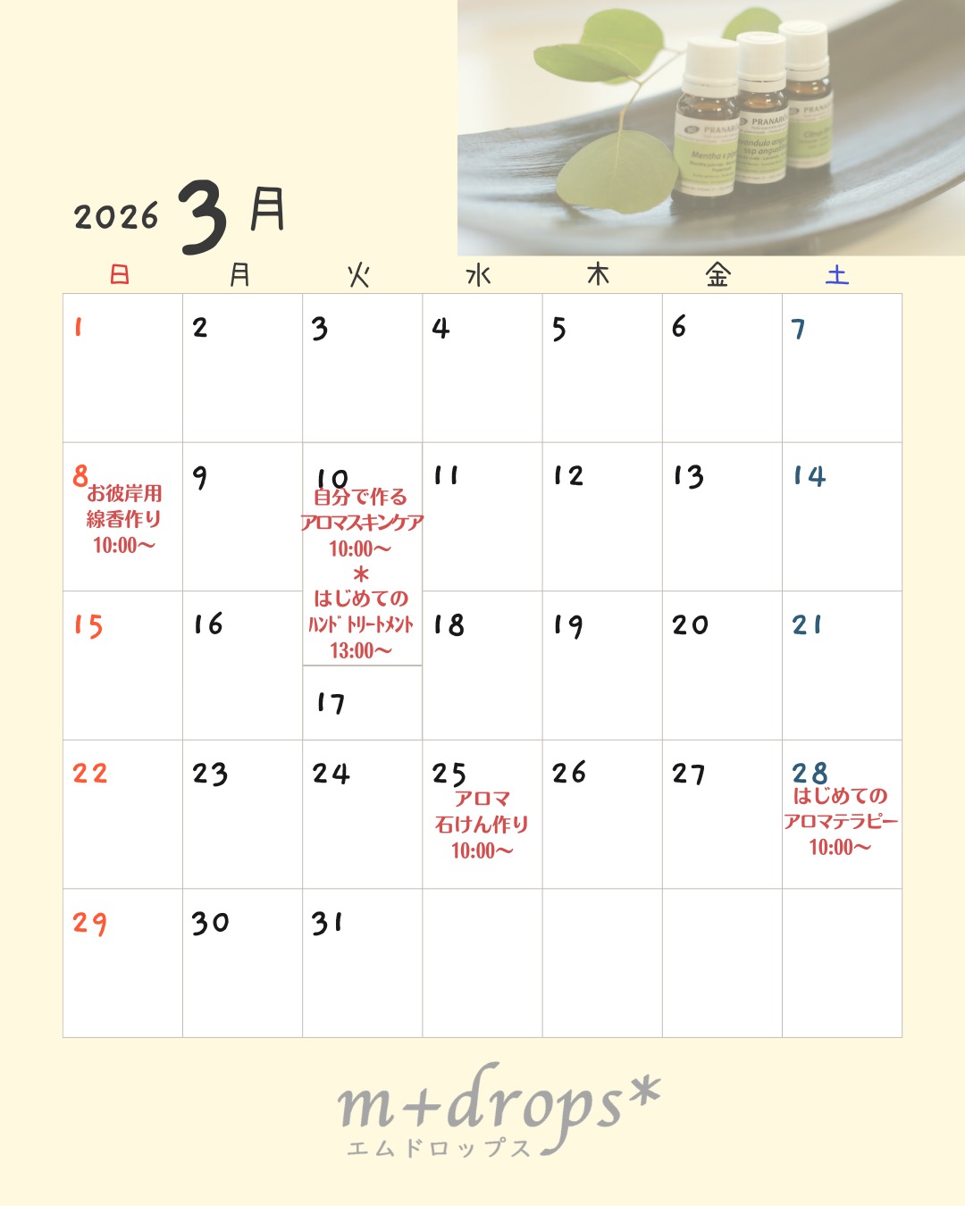 m+drops*講師naoが3月に開催する講座のご案内です。